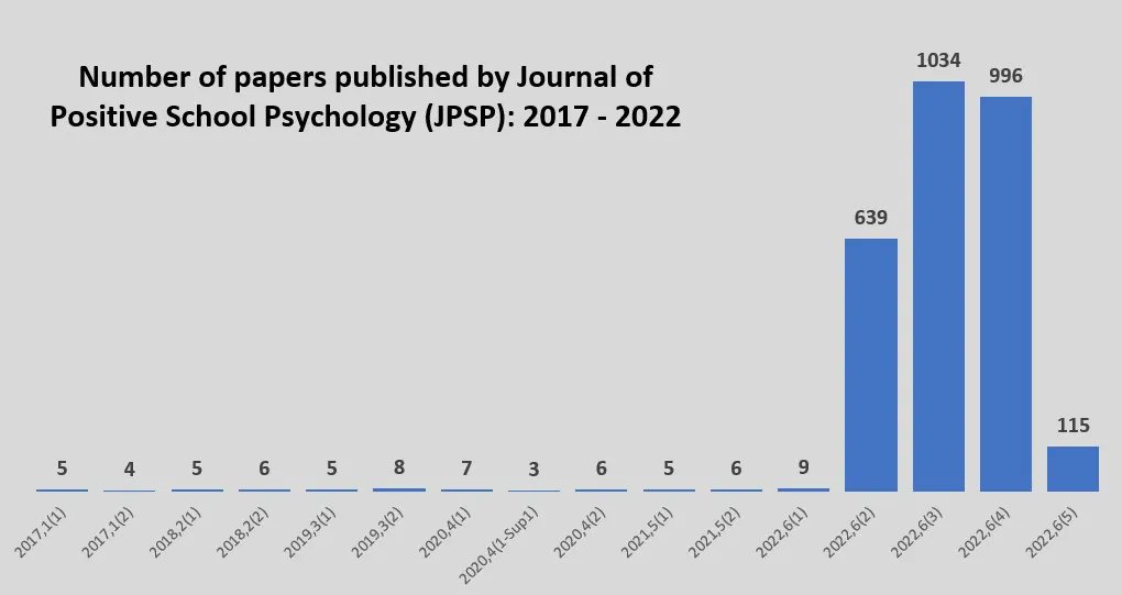 Tweet: Journal of Positive School Psychology has moved from publishing 2 volumes a year to (we suspect) 12 & each issue has moved from ~10 articles to >600 each issue. How does a journal make this transition, with all that additional reviewing? @Scopus #Jnl_PSP https://buff.ly/3a4oKou