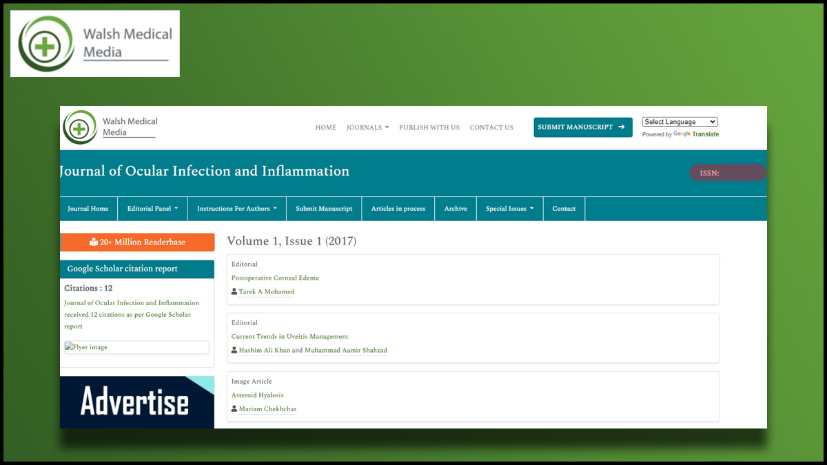 Tweet: Looking at @WalshMedical Of the 77 journals they publish only the Journal of Ocular Infection and Inflammation does not have an ISSN. #WalshMedicalFacts